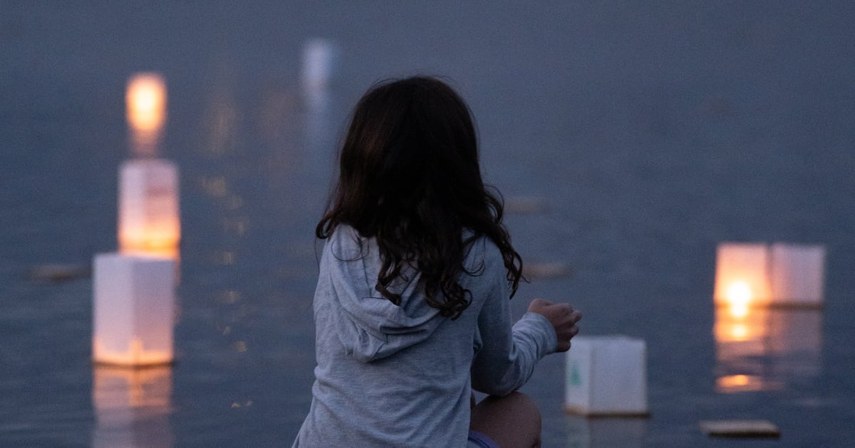 The children also wrote cards on the first responder, and at sunset the family released the lantern into the water.