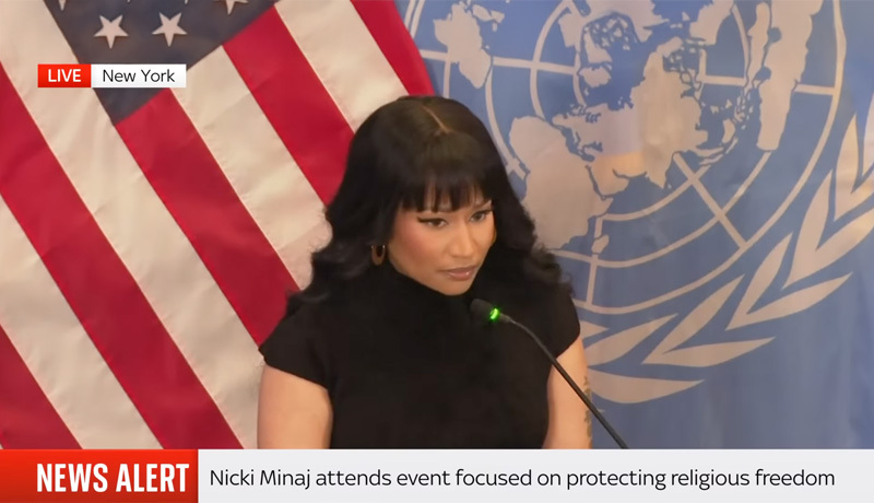 Screen capture of Nicki Minaj giving a speech at the United Nations to highlight claims of Christian persecution in Nigeria. Misrepresenting and politicizing Nigeria’s security challenges will not move us towards solutions. Our brothers and sisters in the Church in Nigeria deserve better recognition because unbalanced and sensational narratives can cause great damage. Sky News/YouTube