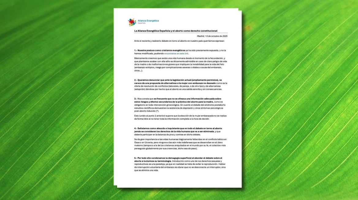 The Spanish Evangelical Union’s October 13 statement on abortion can be downloaded here (in Spanish).