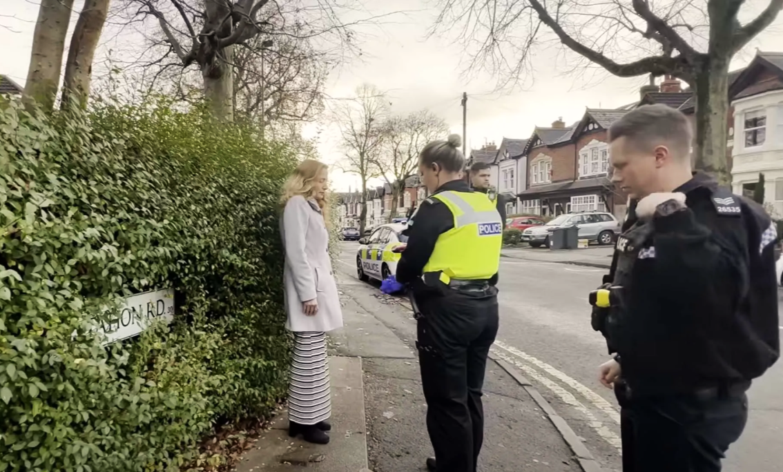 In November 2022, three police officers arrested Vaughnspruce after quietly praying while standing near Kings Norton’s abortion facility. A YouTube video of the incident shows the police officer questioning her.