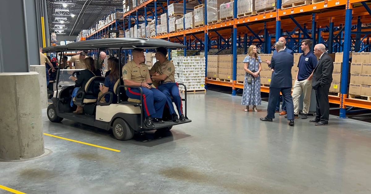 The men and women in the service were impressed by the order, cleanliness and organization of the 500,000 square feet warehouse. Food and supply rows and columns include large storage areas, rack storage, freezers and cooler spaces.