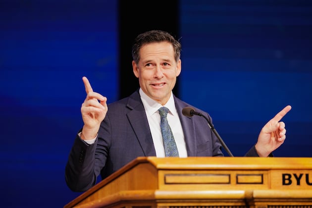 Elder B. Corey Cuvelier of the General Authority Seventy speaks at the BYU Devotional on Tuesday, November 11, 2025, at the Marriott Center in Provo, Utah. |Austin Jones, BYU